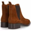 Botin para mujer ALPE COUTURE, fabricado en piel (baby silk) de color cuero con tacón de 3,5 cm, suela antideslizante y puntera redonda, sin cierre y caña baja.