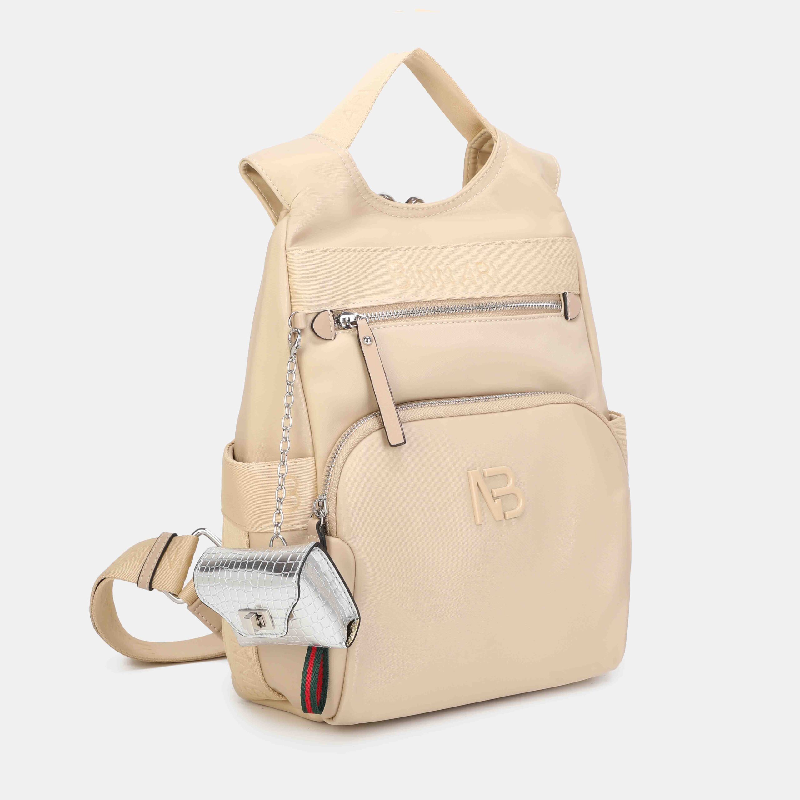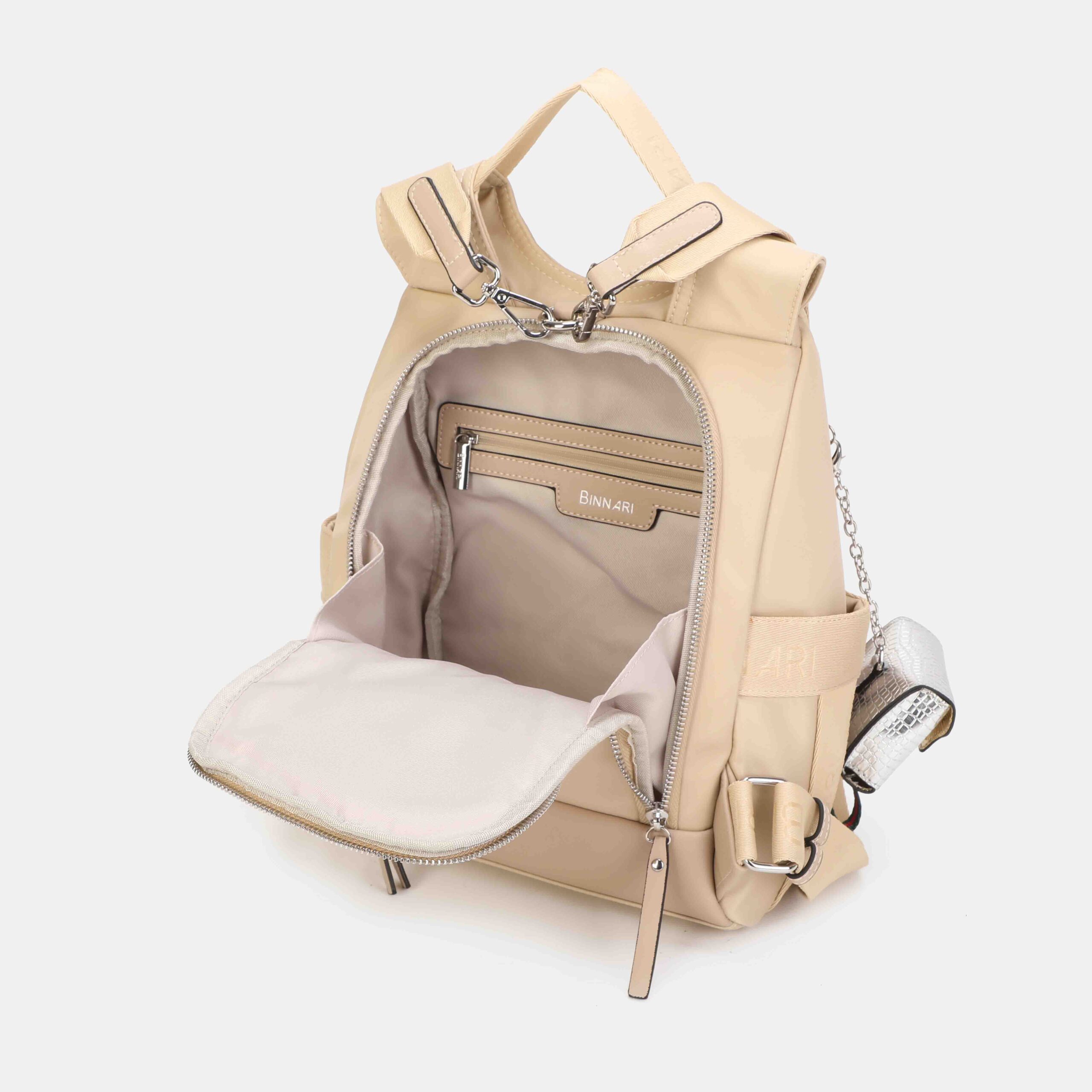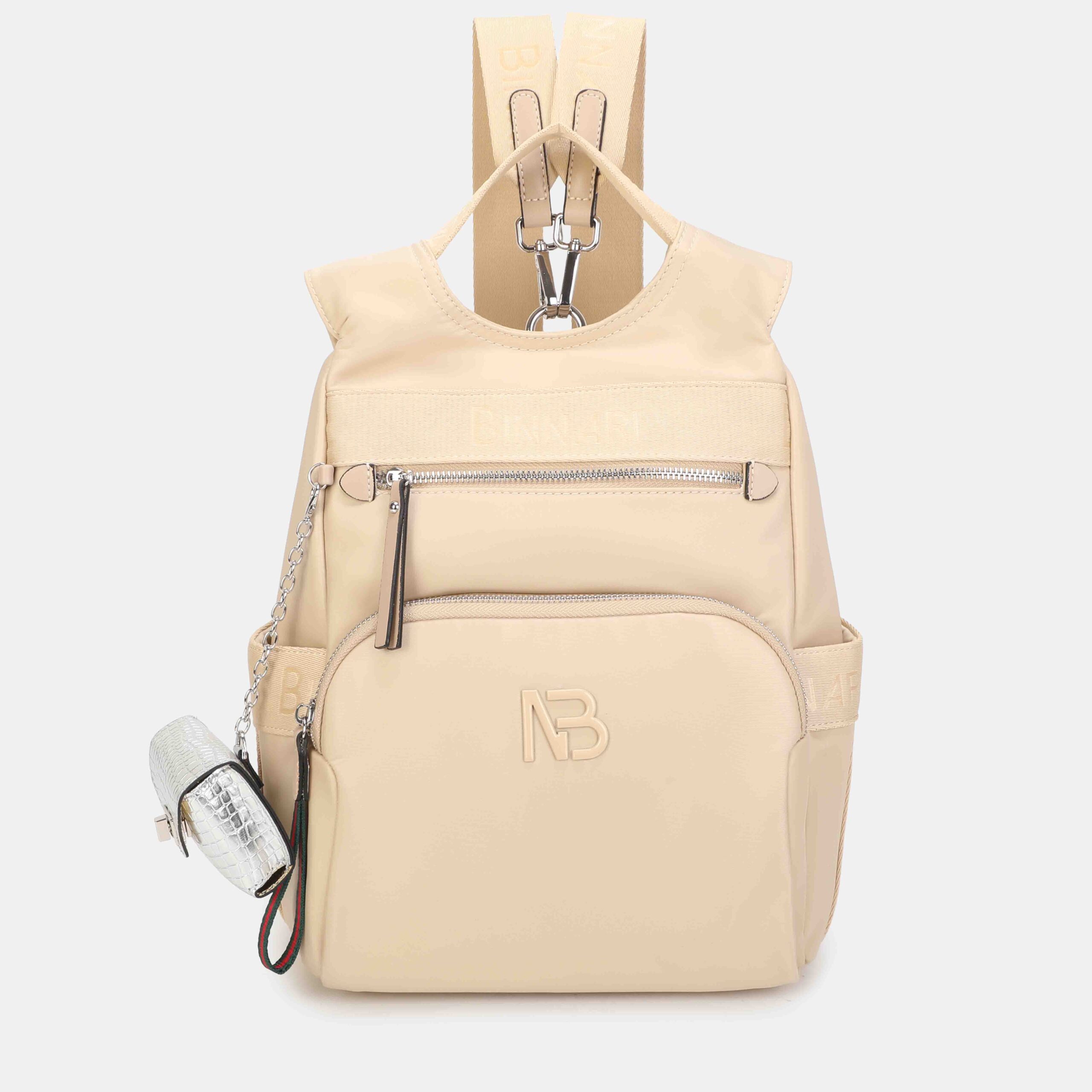 Esta mochila destaca por su diseño antirrobo, ya que la apertura principal está situada en la parte trasera, ofreciendo mayor seguridad en el día a día. Está confeccionada en nylon resistente con detalles en PU, e incorpora un bolsito pequeño extraíble con acabado efecto piel. El logo NB en tono a juego y los tirantes anchos regulables completan un modelo cómodo, moderno y muy práctico para cualquier ocasión.