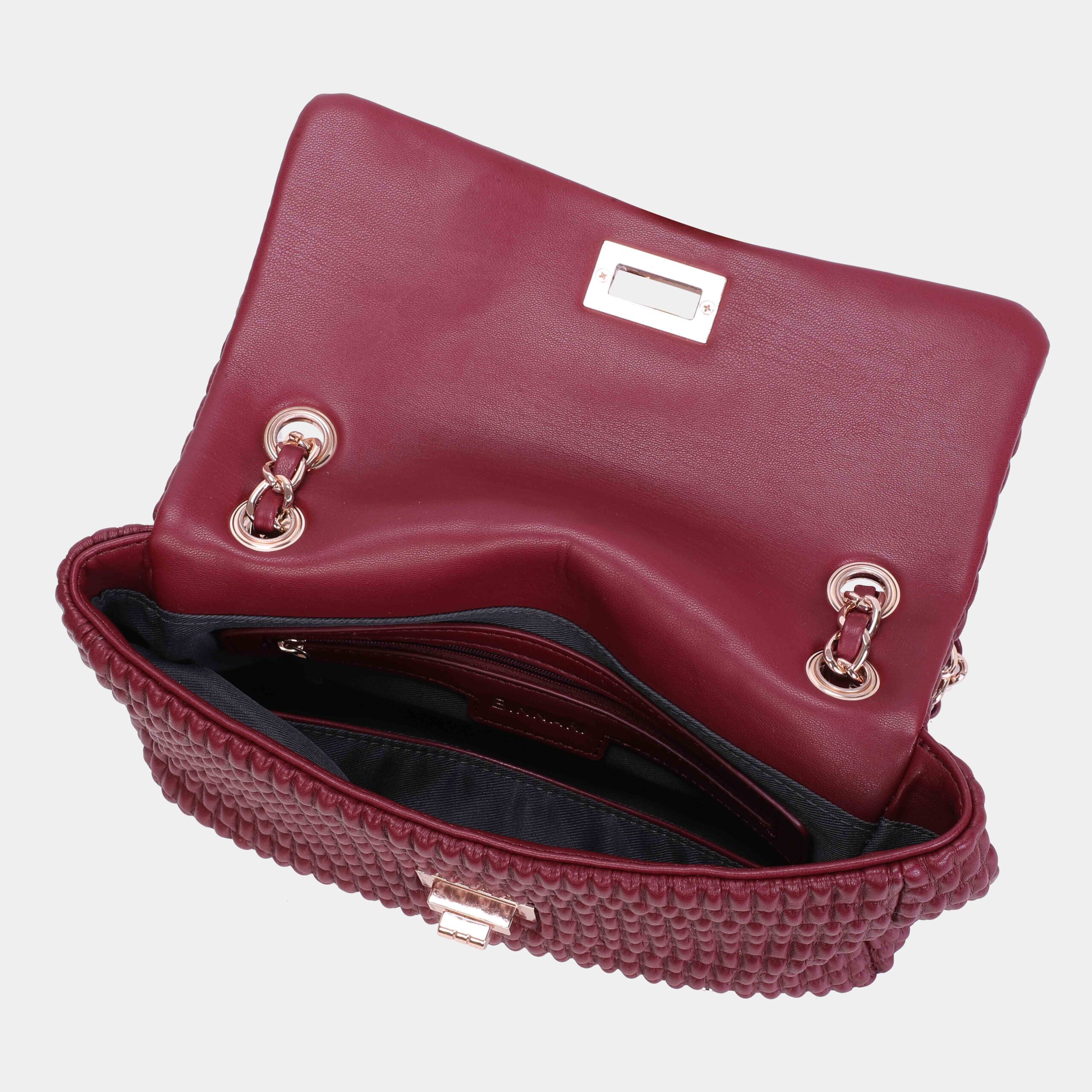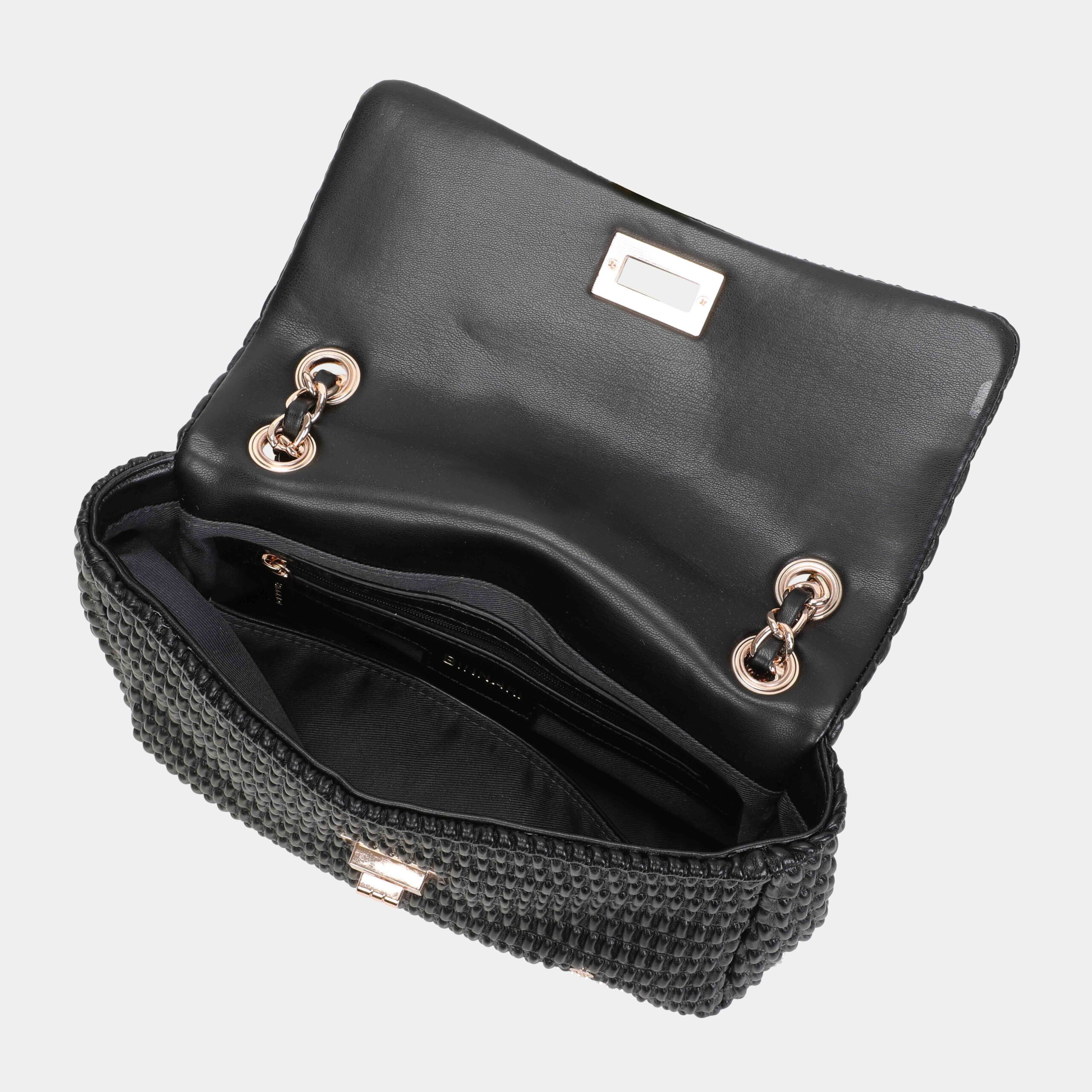 Nuestro bolso de hombro con solapa Patti está confeccionado en pu acolchado de alta caliad con los detalles metálicos en color oro claro . Es un bolso que aportará versatilidad a tus looks, ya sea de hombro o como bandolera. Lo podrás encontrar en diferentes colores: negro y bordo.