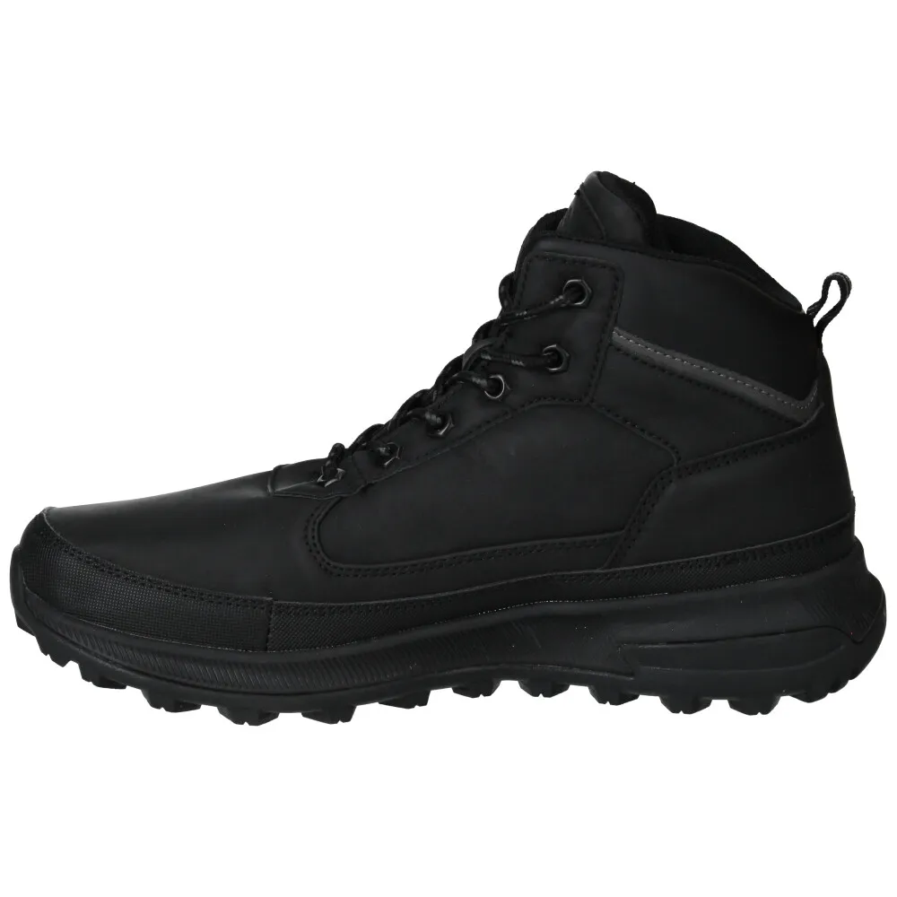Botas de travel para hombre en negro, destacan por su diseño resistente y funcional, con un cierre de cordones y un logo distintivo en el lateral. Estas botas cuentan con plantilla Comfort Travel que se adapta a diversos terrenos, proporcionando soporte y reduciendo la fatiga del pie durante largas jornadas. Ideales para combinar con jeans o atuendos outdoor, son perfectas para cualquier aventura.