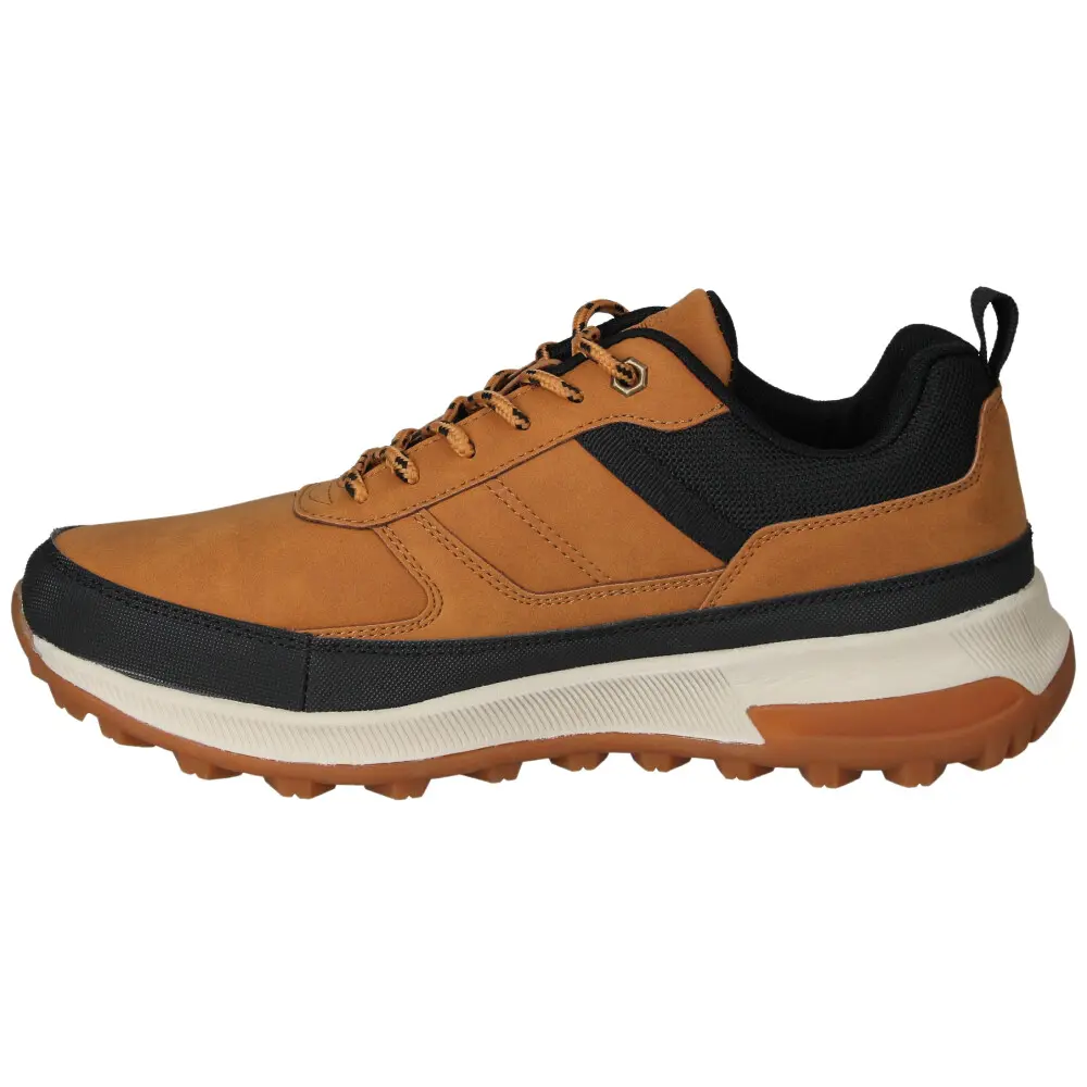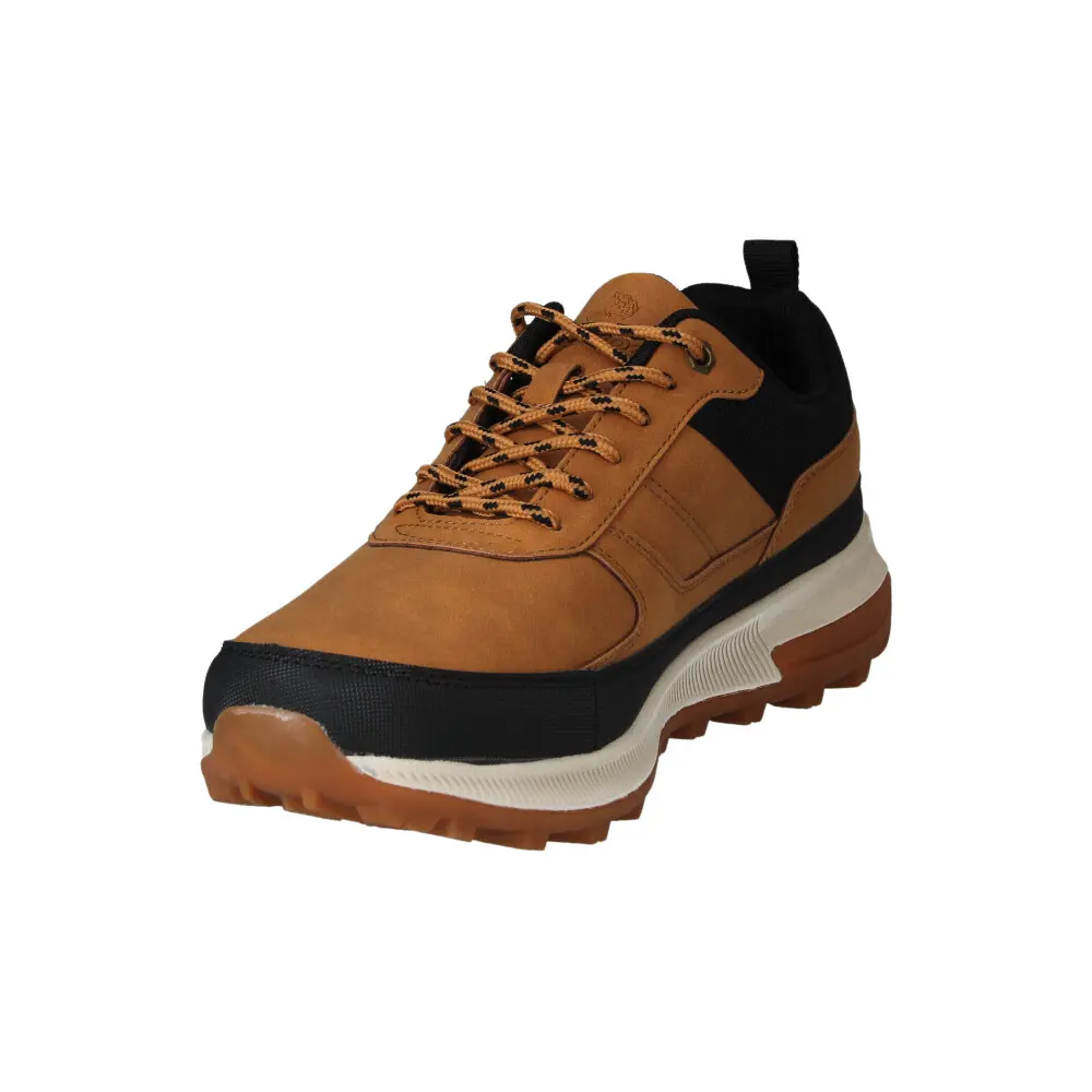 Calzado travel de hombre de color camel con detalles en negro. Su diseño combina una suela con volumen y un corte robusto para ofrecer un estilo actual y funcional. La plantilla Comfort Travel proporciona una gran sensación de comodidad, soporte y reduce la fatiga durante el uso prolongado. Ideales para quienes buscan un calzado versátil que encaje con un estilo activo y urbano.