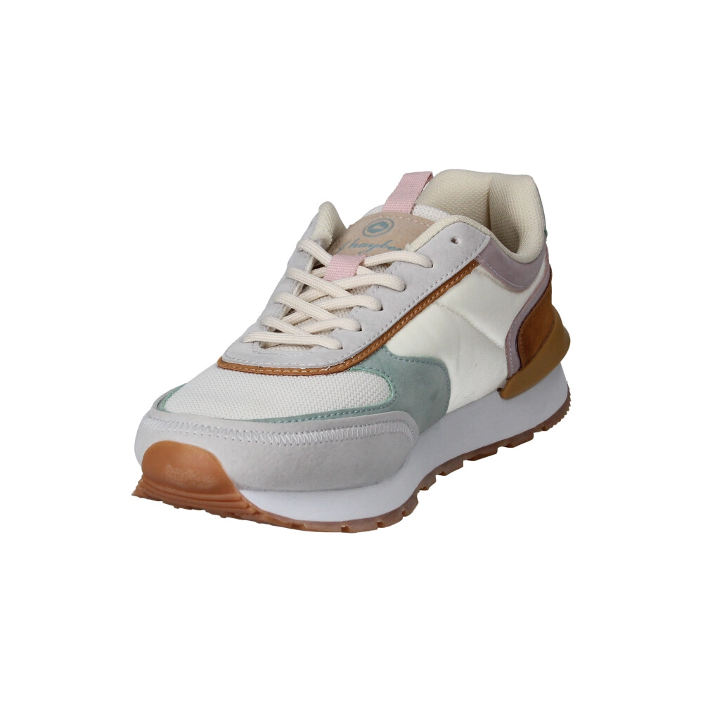 Zapatillas Lea beige con mezcla de tejidos y refuerzos en nobuck sintético que aportan estructura al diseño. Su combinación de colores pastel y detalle contrastado en el talón refuerzan un estilo de tendencia con aire retro. La plantilla Urban Comfort ofrece una pisada estable y suave, ideal para moverse por la ciudad con comodidad durante todo el día. Una propuesta versátil con carácter urbano.