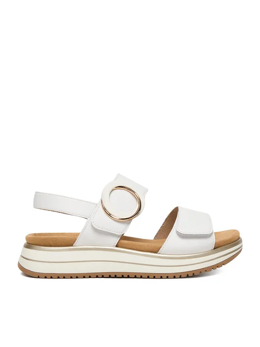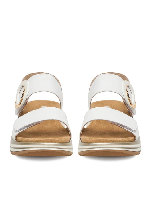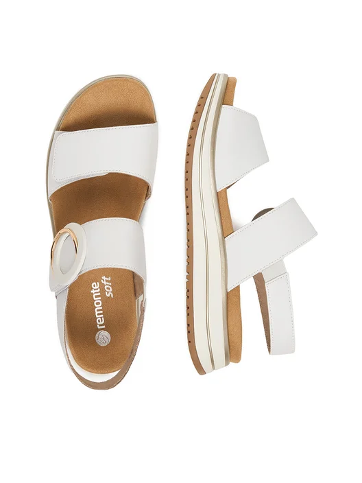 Sandalia de mujer de la marca Remonte en color blanco con cierres mediante velcros.