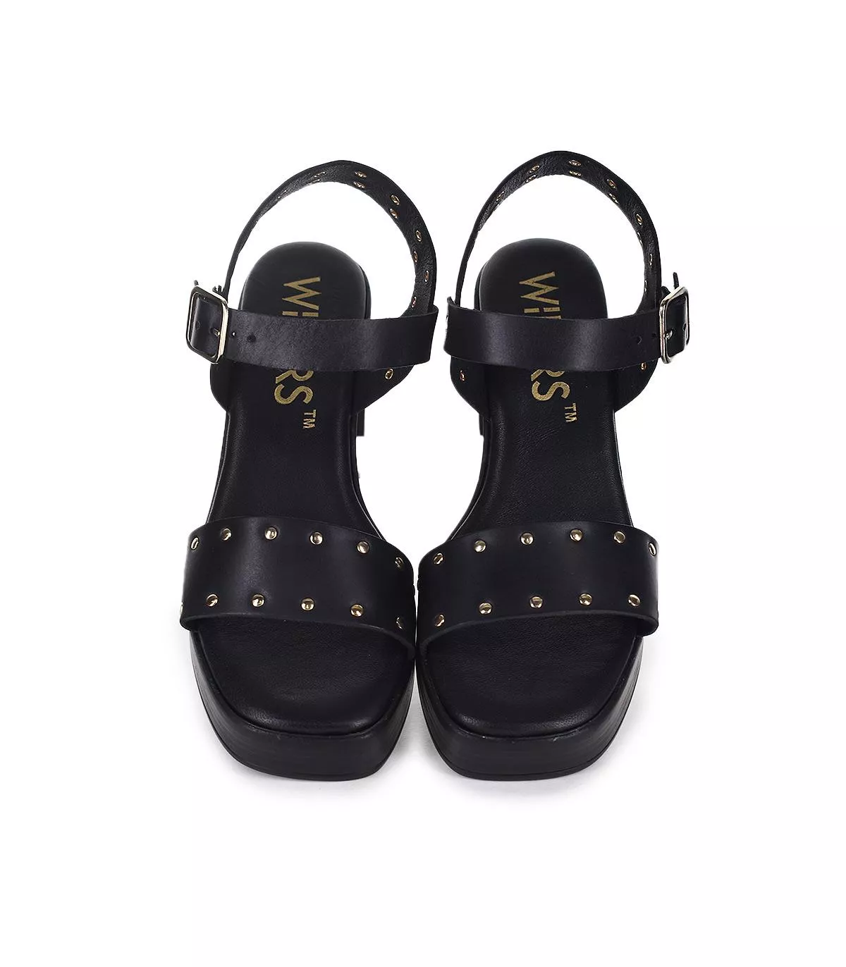 Sandalia de mujer de la marca Wikers de tacón con plataforma en color negro.