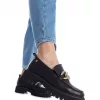 Mocasín de mujer, de la marca Carmela. Fabricado en piel de alta calidad. Cadena decorativa en el frente. Suela dentada antideslizante.